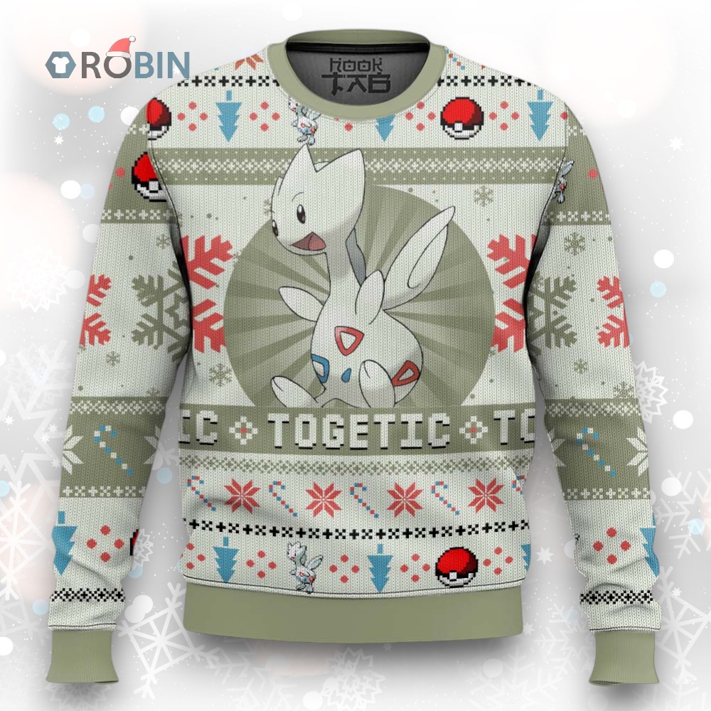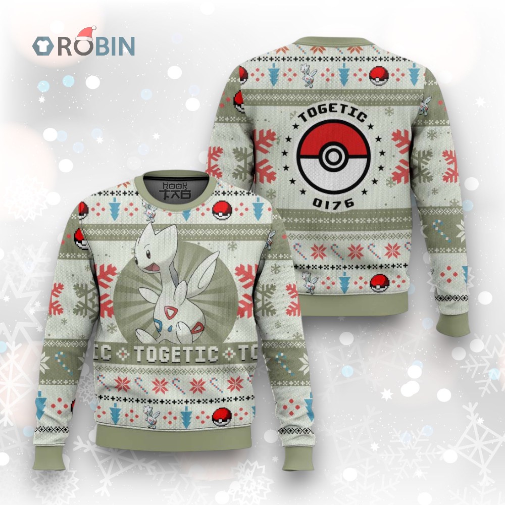 Spread holiday cheer with this adorable Togetic sweater! Featuring the Gen 2 favorite in a festive, and slightly awkward, Christmas design. Perfect for Pokemon fans who want to be cozy and unique this holiday season. Grab yours before they fly away!
