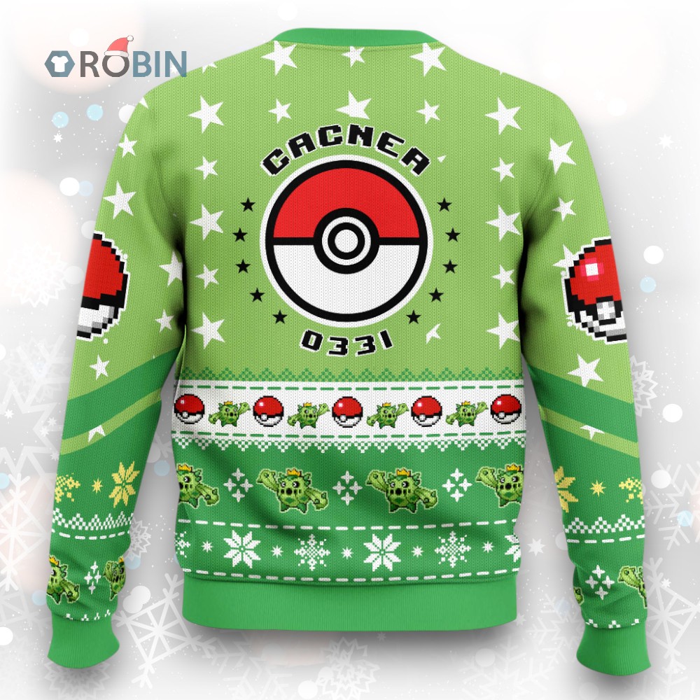 Get ready to spike the holiday cheer! This festive sweater featuring a certain Generation 3 Grass-type is sure to be a conversation starter. Perfect for fans who appreciate unique Pokemon merch and adding a touch of quirky fun to their Christmas wardrobe. Grab yours before it's gone!