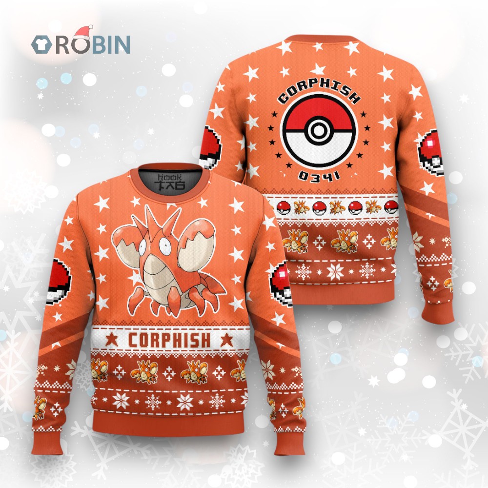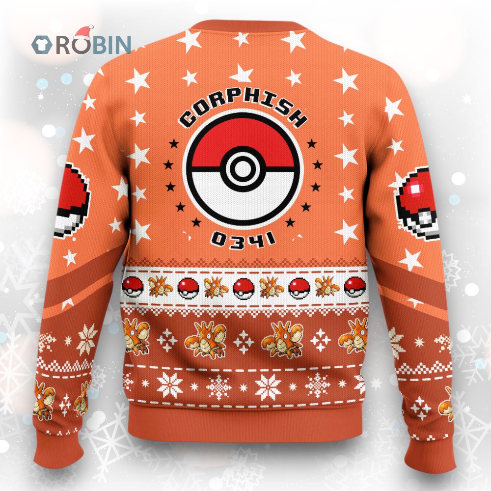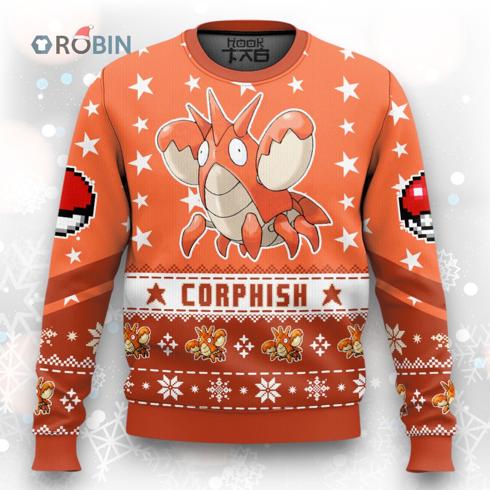 Corphish is ready to pinch his way into your heart this holiday season! This cozy sweater features the rambunctious Rough Skin Pokemon in all his Gen 3 glory. Perfect for adding a little Water-type cheer to your Christmas festivities. Get yours before they're all snatched up!