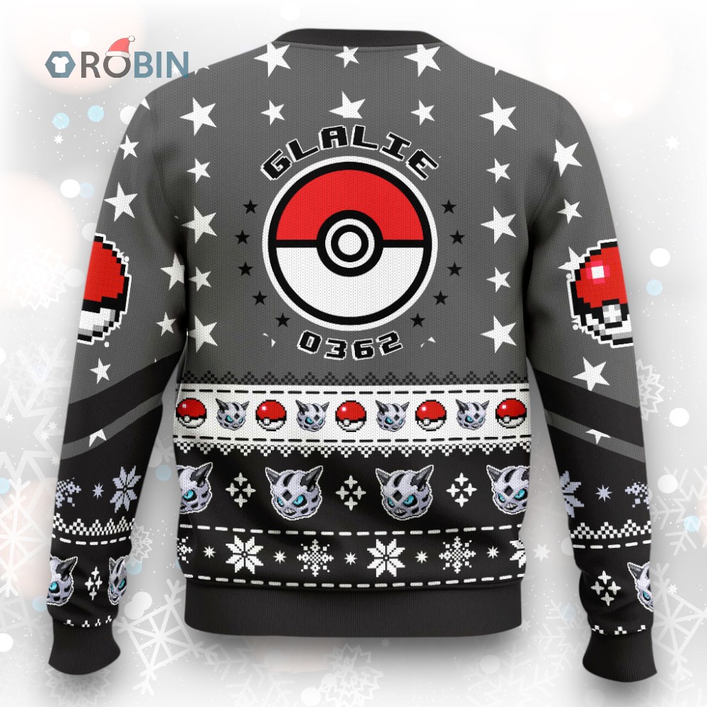 Stay frosty this holiday season! ❄️ Rock a unique, festive look with this cool Ice-type themed sweater. Features a chilling design inspired by Hoenn's Glalie. Perfect for fans of the Ruby, Sapphire, and Emerald games! Get yours before it's gone! 🥶