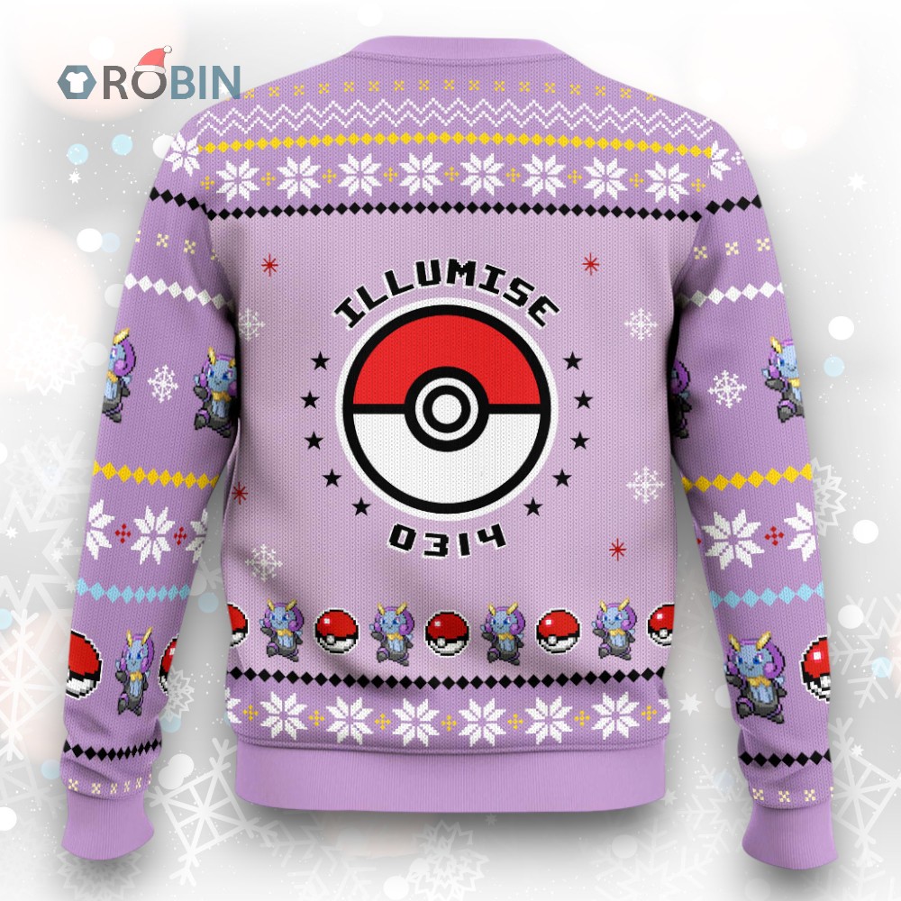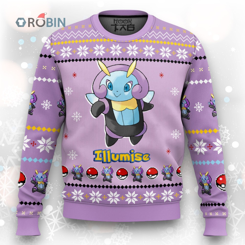 Light up your holiday season with this dazzling Illumise-inspired knit! A unique and festive way to show your love for Hoenn and Bug-types. Get ready to spread some Christmas cheer with this cozy and eye-catching sweater. Perfect for trainers with a unique sense of style!