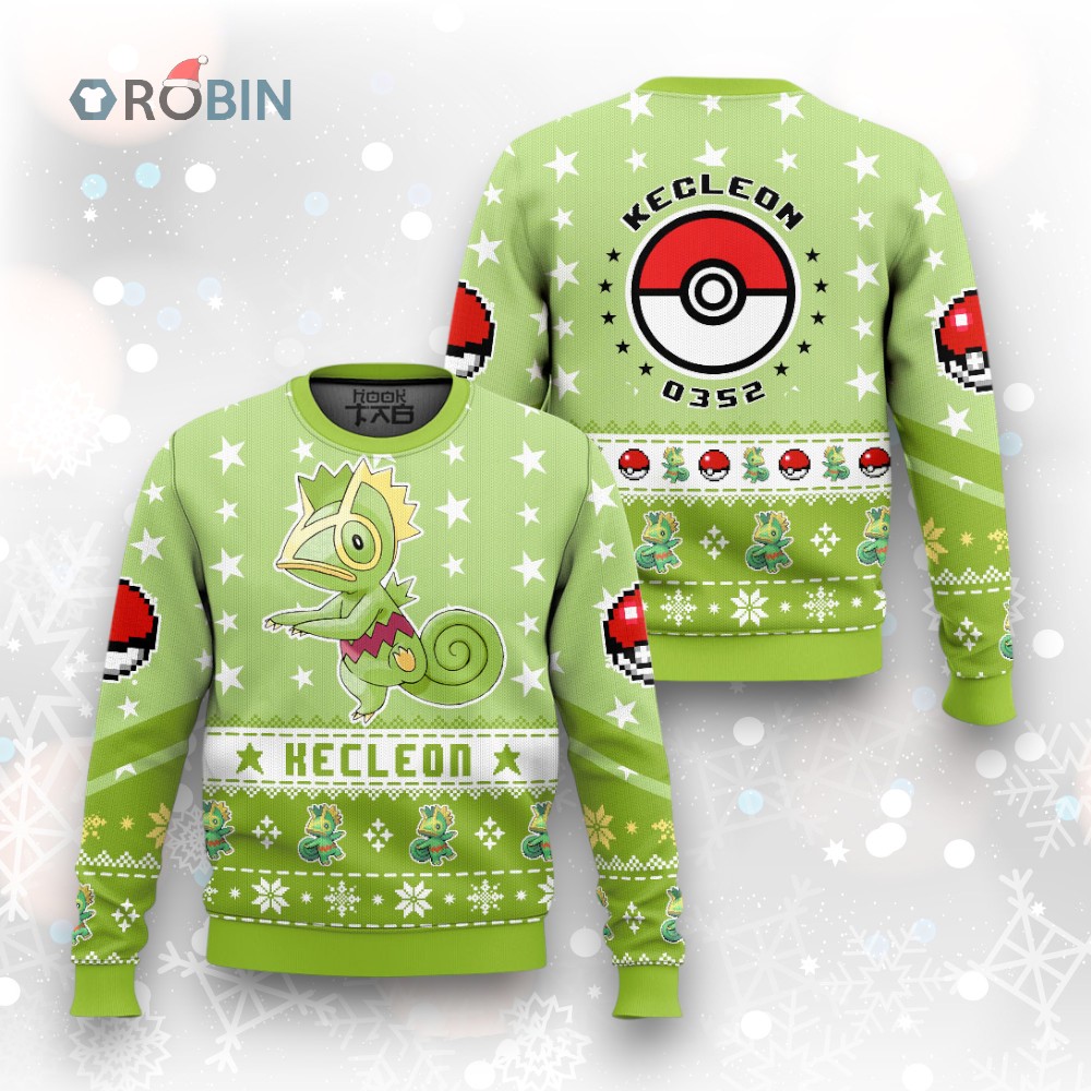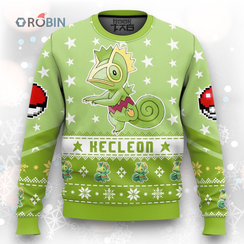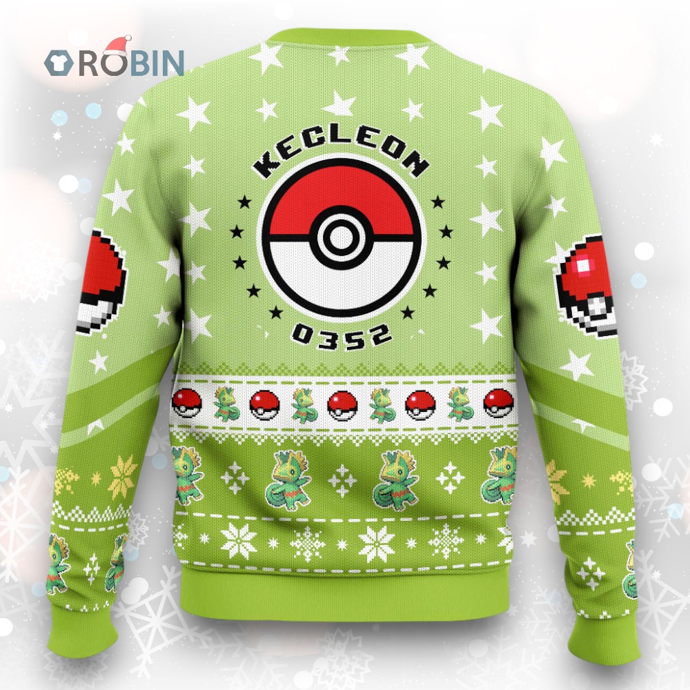 Get ready for the holidays with a quirky twist! This sweater features the color-changing Kecleon from the Hoenn region, decked out in festive flair. Perfect for Pokemon fans who want to add a unique and cozy touch to their winter wardrobe. Grab yours and spread some cheer!