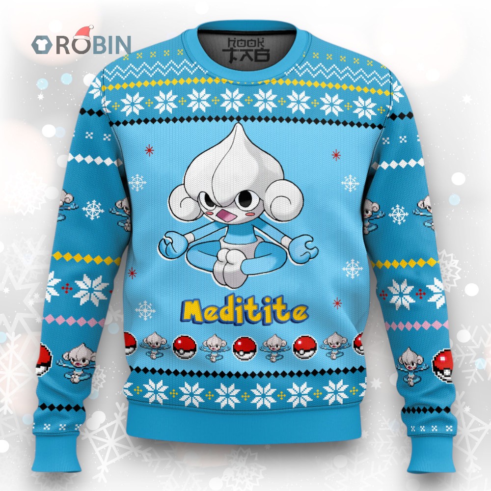 Meditite's channeling holiday cheer (sort of)! This festive knit features the Psychic/Fighting-type in all its cross-legged glory. Perfect for those who prefer a unique, quirky take on holiday apparel. Get yours before the winter season begins!