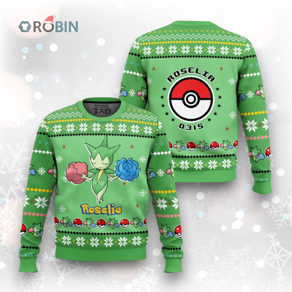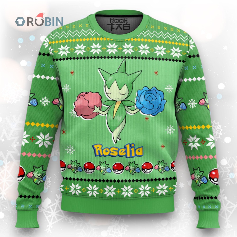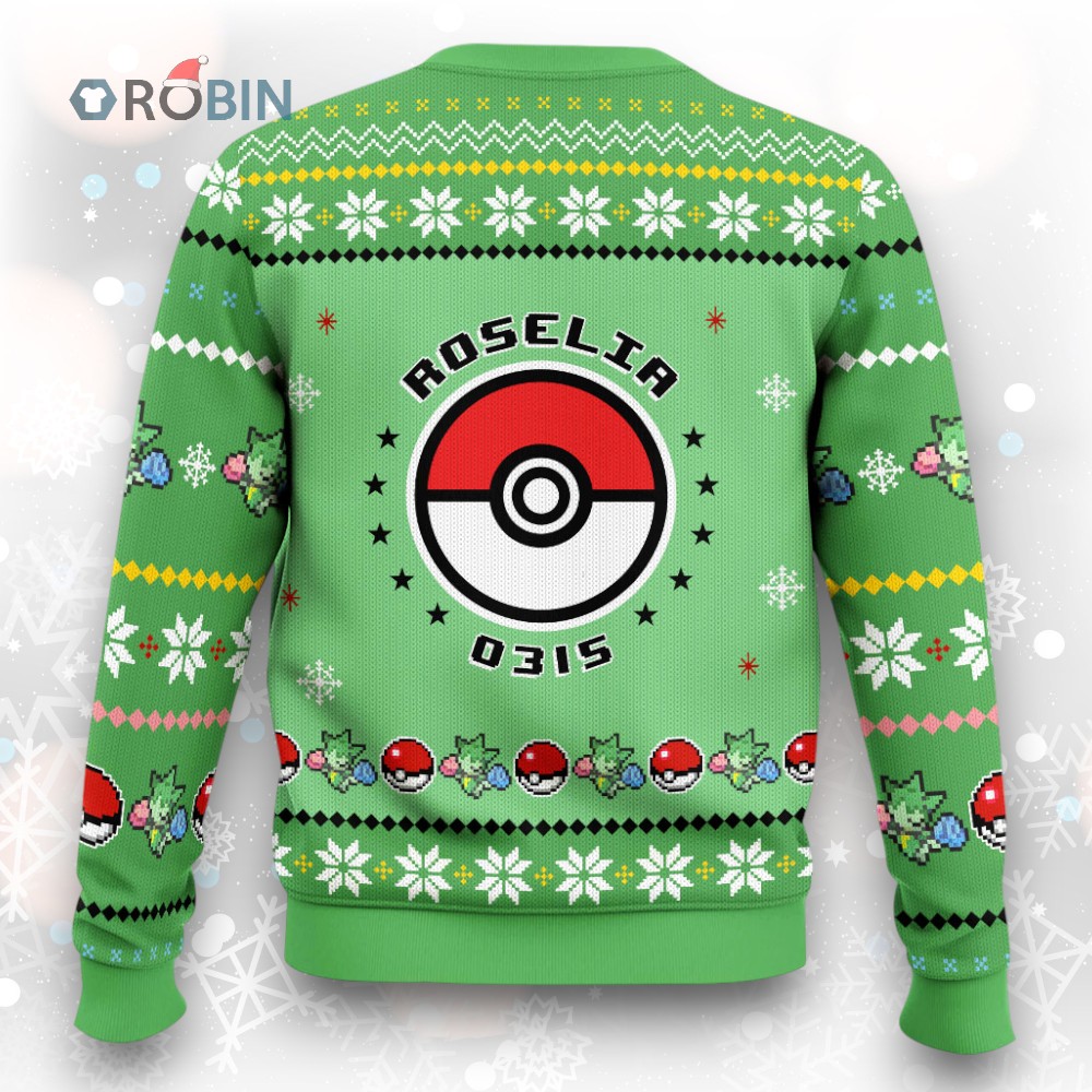 Roselia's ready to spread holiday cheer! 🌹🎄 This adorable Christmas sweater features the Grass-type beauty in a festive, slightly-ugly (but mostly cute!) design. Perfect for adding a touch of Gen 3 nostalgia to your winter wardrobe. Get yours now and bring some rosy holiday spirit! ✨