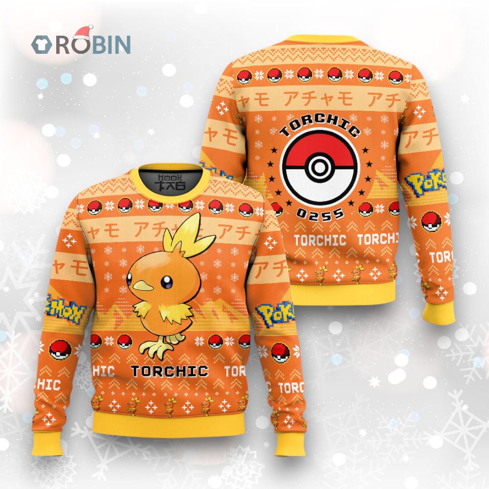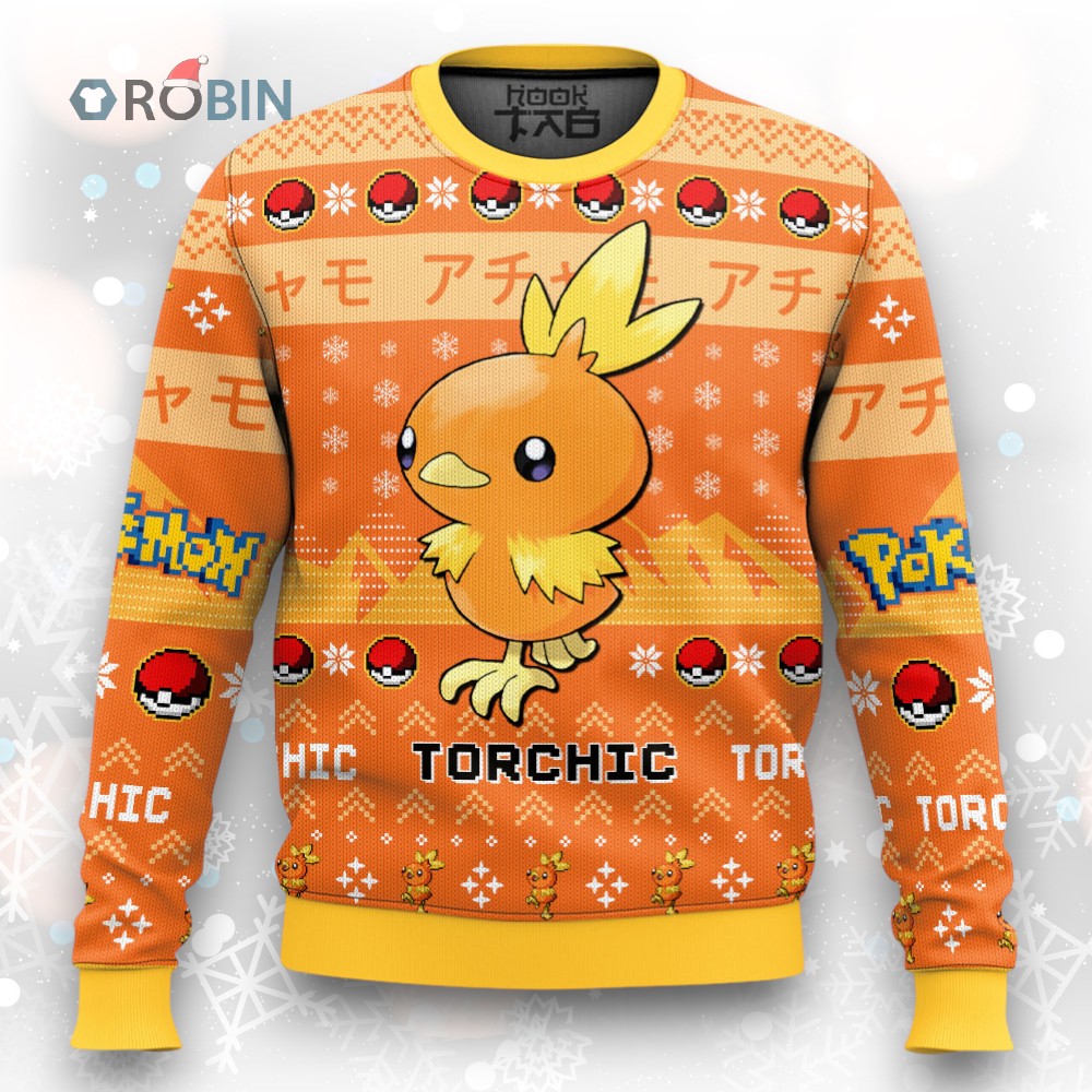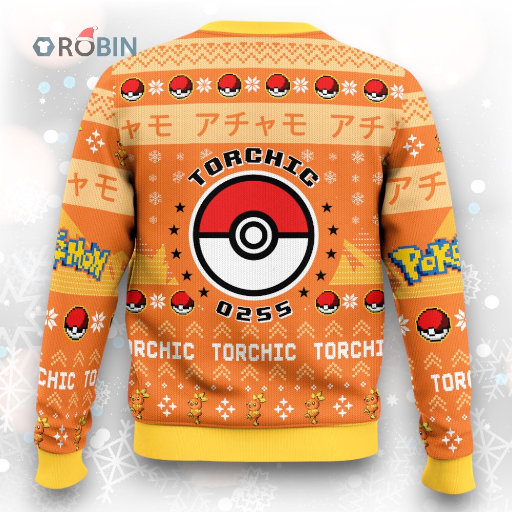 Warm up your holiday season with this adorable, fire-type festive sweater! Featuring everyone's favorite little chick, Torchic, this cozy knit is perfect for showing off your love for Hoenn while spreading some Christmas cheer. Get yours before they're gone!