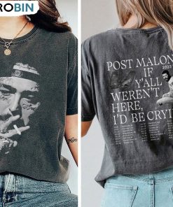 The Post Malone If Y'all Weren't Here I'd Be Crying shirt is a vintage-inspired unisex hoodie long sleeve that pays homage to the popular singer and songwriter. Made from soft and comfortable fabric, this hoodie features a unique design with Post Malone's name and a touching statement. Perfect for fans of Post Malone, this shirt is a fashionable way to show your support and love for the artist. Whether you're attending a concert or just want to express your admiration, the Post Malone hoodie is a great addition to your wardrobe.