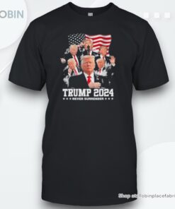 Are you a supporter of President Trump and his vision for the future of America? Show your unwavering loyalty with our exclusive President Trump 2024 Never Surrender shirt. Made with high-quality materials and featuring a bold design, this shirt is the perfect way to make a statement and stand out from the crowd. Join the movement and let your voice be heard with this must-have piece of political apparel. Don't miss out on your chance to show your support for President Trump in the upcoming 2024 election – order yours today!