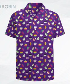 Pride Flag Heart Print Lgbt Gay Trans Bi Ace Queer Hawaiian Vintage Shirt Mens Button Down Tropical Hawaii Beach Shirts