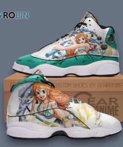 Step up your sneaker game with these unique kicks! 🔥 Nami-inspired design meets Jordan 13 style. Perfect for adding a splash of personality to any outfit. Get ready to turn heads with these weather-ready and stylish sneakers!