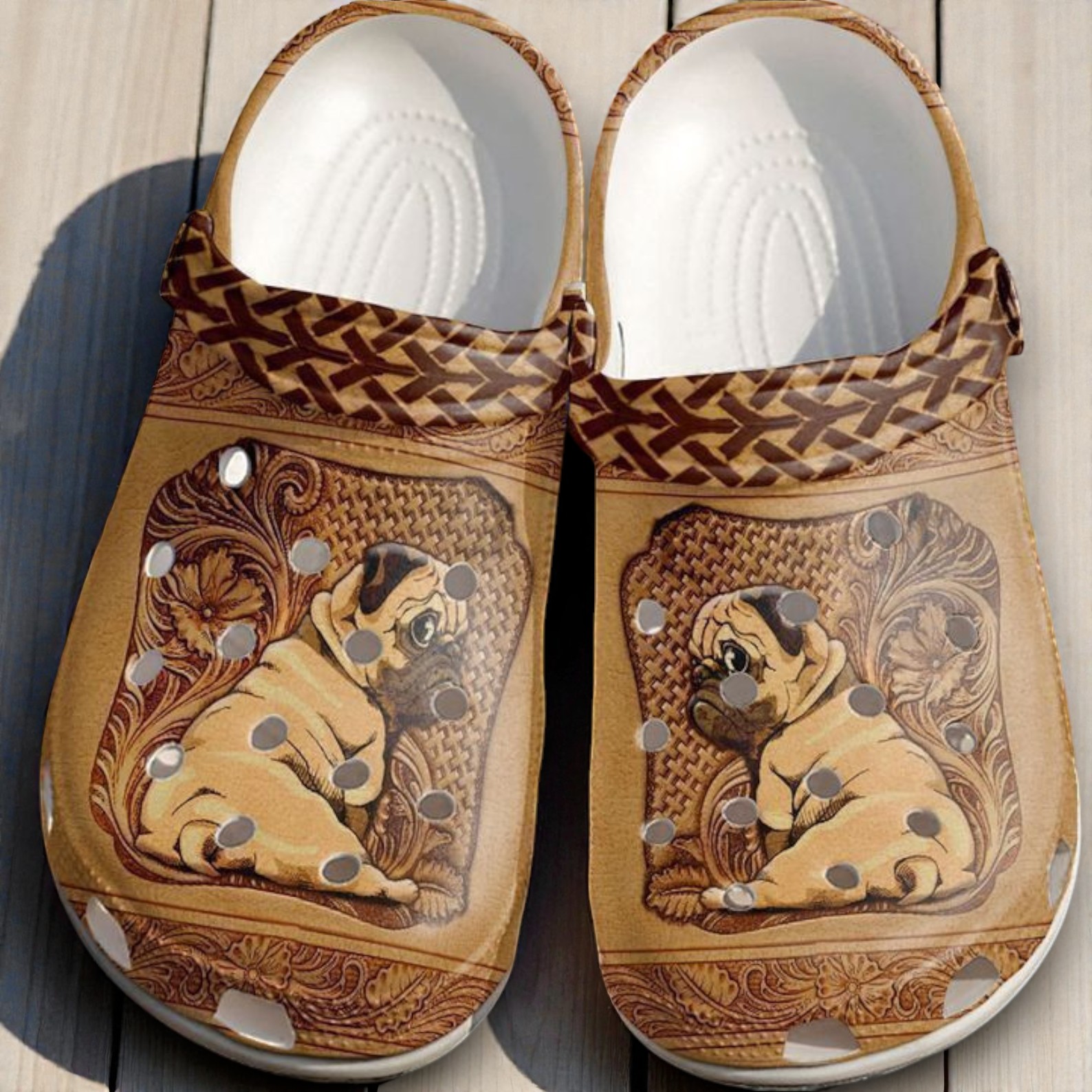Pug lovers know that their furry companions carry a charm all their own, and these clog shoes capture that spirit with playful boldness. Centered on a detailed pug illustration, the design combines ornate scrollwork with a textured background that feels both vintage and warm. The artwork’s rich brown tones blend seamlessly with the white accents inside, creating a cozy yet eye-catching contrast. Floral patterns weave around the pug, adding a whimsical elegance that reflects the quirky personality many pug owners admire in their pets. This style doesn’t just speak to those who appreciate art; it’s a nod to the pug fandom’s unique identity—those who celebrate this distinctive breed’s charm with a mix of humor and affection. Anyone who spends time admiring their pug’s wrinkled face and expressive eyes will recognize the heart behind the design, making these clog shoes feel like a small personal emblem rather than just footwear. Ideal for casual wear, they also carry that lighthearted vibe which could brighten a day spent around other dog lovers or at relaxed gatherings. As a thoughtful gift, they strike a balance between fun and familiarity, an item that pug enthusiasts will likely treasure for its creative expression woven right into every stitch. The pug clog shoes are the kind of statement piece that quietly says you belong to a community that values loyalty, laughter, and a touch of vintage charm.