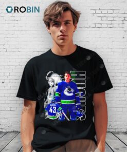 Rep your favorite Canucks player with this awesome shirt! Show your team pride and support for Hughes in style. Perfect for game days or everyday wear. Comfy and a great addition if you already have a Canucks jacket. Get yours now!