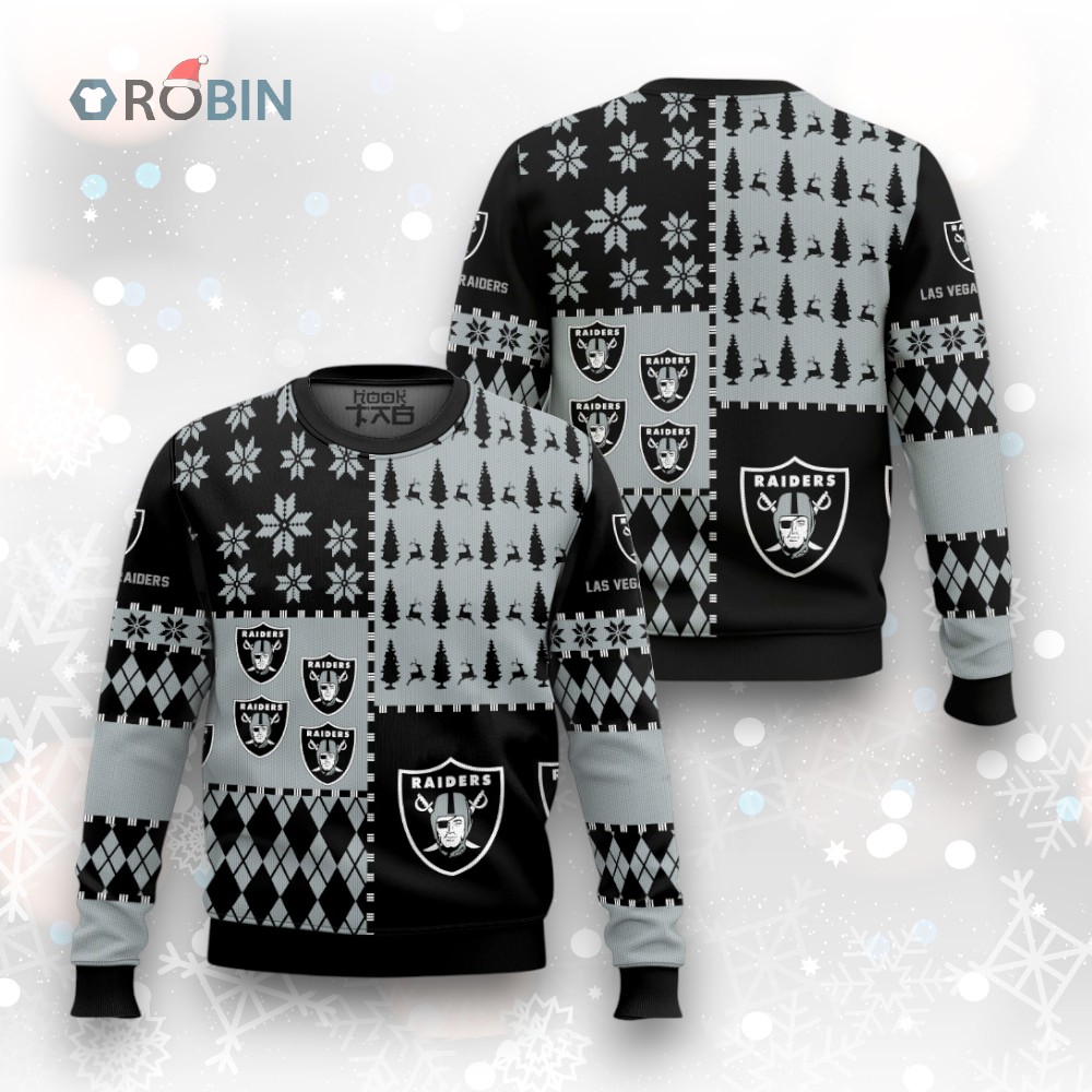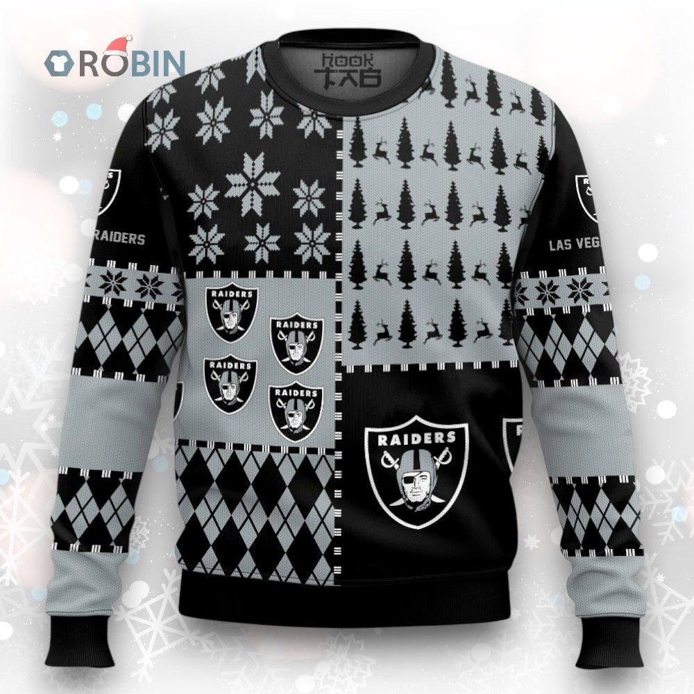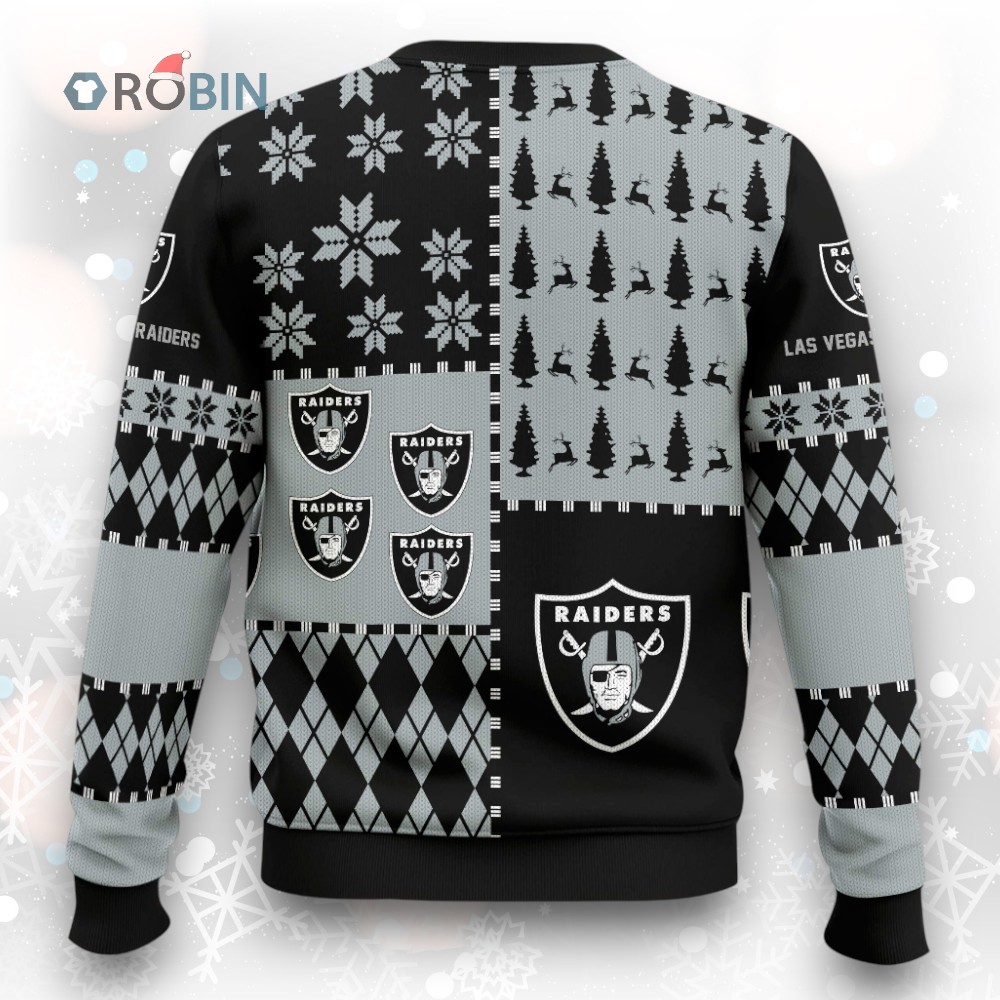 Rock your ugly Christmas sweater game this holiday season with this unique Raiders themed sweater! Perfect for showing your team spirit at any holiday gathering. Get yours now and light up the party!