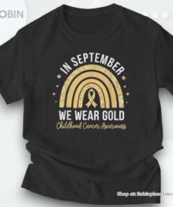 Rainbow In September We Wear Gold Childhood Cancer Awareness Shirt