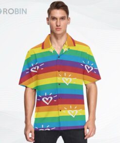 Show your pride and island vibes! This vibrant Hawaiian shirt features a colorful striped design. Perfect for beach days, parties, or any occasion where you want to make a statement. Get yours today and spread the love!