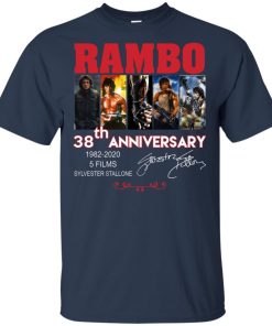 Rambo 38th anniversary 1982-2020 signature 5 films, sylvester stallone shirt. Buy it now, from $19.99 and $3.99 shipping. This shirt available in t shirt, long sleeve, hoodie and multiple color.