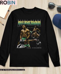 A popular and edgy shirt design that stands out in a crowd, the Full Violence shirt by Randy Brown Rudeboy exudes a bold and confrontational attitude. The graphic on the shirt likely features a striking image or text that makes a strong statement. The garment is sure to catch people’s attention and provoke a reaction, encapsulating the rebellious and daring spirit of the wearer.