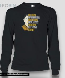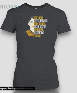 Rbg Dog Loving Coffee Drinking Book Reading Social Justice Advocating Blue Voting Feminisunisex Shirt details