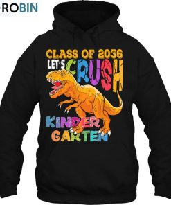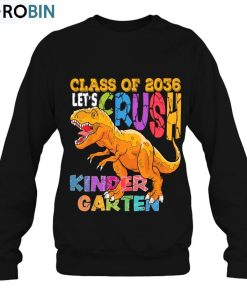 Ready To Crush Kindergarten 2036 Dinosaur Back To School Boy Unisex Shirt a must-have first-day of school shirt which is perfect for boys and girls. The beautiful t-shirt features designs of an adorable cartoon dinosaur that would be sure to make anyone smile. It's made of a soft and durable cotton blend, making it comfortable to wear and long-lasting. It has a classic design that makes it a timeless piece of clothing for any child. Plus it comes in a range of colors and sizes so Mom and Dad can find the right fit for their little one. Whether they are starting kindergarten or an online program, this stylish shirt will ensure their first day of school is full of confidence and fun.