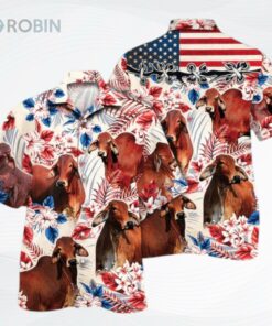 Red Brahman Cattle Lovers American Flag Hawaiian Shirt