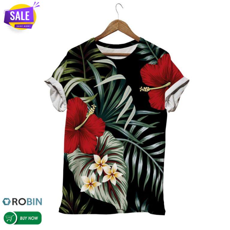RED HIBISCUS T-SHIRT.