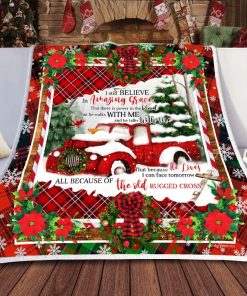 Red Truck All Because Of The Old Rugged Cross Fleece Blanket