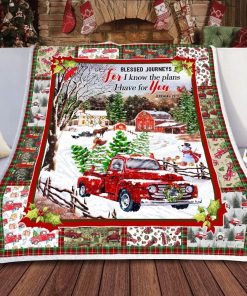 Red Truck Blessed Journeys Christmas Fleece Blanket