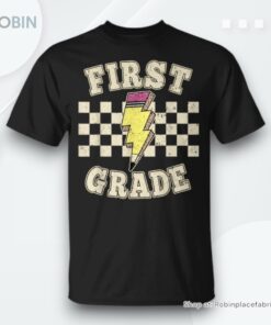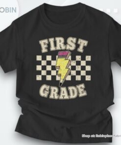 Step back into the classroom with a touch of flair that screams both nostalgic charm and electrifying energy! Designed for those who light up young minds, this captivating tee combines vibrant retro design elements with iconic symbols of schooling. Adorned with striking lightning bolts and classic pencil motifs, this shirt isn't just an outfit; it's a statement celebrating passionate educators. Perfect for teachers who wish to inspire with both presence and style, embrace this unique piece that truly captures the heartbeat of first-grade teaching enthusiasm!