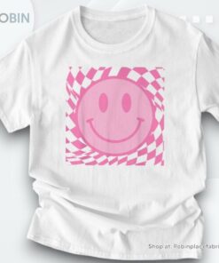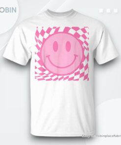 Retro Happy Smile Face Smiling Checkered Pattern Pink Trendy Shirt