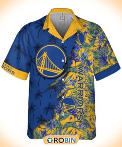 Retro NBA Golden State Warriors Tropical Flowers Hawaiian Button Shirt features