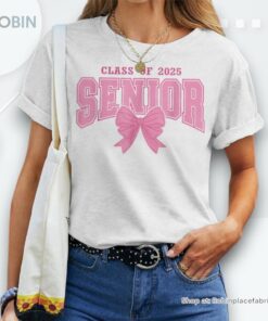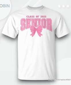 Retro Senior 25 Class Of 2025 Graduation Coquette Pink Bow Unisex Shirt
