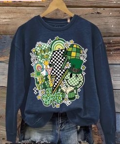 Celebrate the joy of St. Patrick’s Day with this charming casual sweatshirt that features a vintage-inspired design. The classic color scheme and playful graphics make it a fun and festive choice for the holiday. The cozy and comfortable fabric is perfect for a relaxed day of celebrating or just enjoying a casual outing with friends. Embrace the spirit of St. Patrick’s Day with this retro-style sweatshirt that adds a touch of whimsy to your wardrobe.