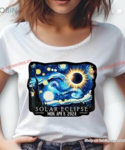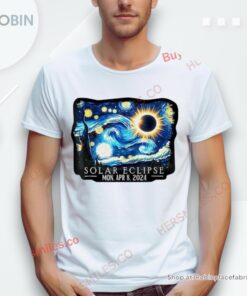 Get ready to dazzle in a cosmic blend of art and astronomy with our latest design! This shirt promises to captivate stargazers and fashion aficionados alike, featuring a stunning fusion of Van Gogh-inspired starry nights and an exclusive homage to the upcoming remarkable solar eclipse. Sport a masterpiece that not only looks unique but also commemorates a once-in-a-lifetime celestial event. Perfect for those who adore the night sky and seek a stylish conversation starter, this shirt is a heavenly addition to your wardrobe.