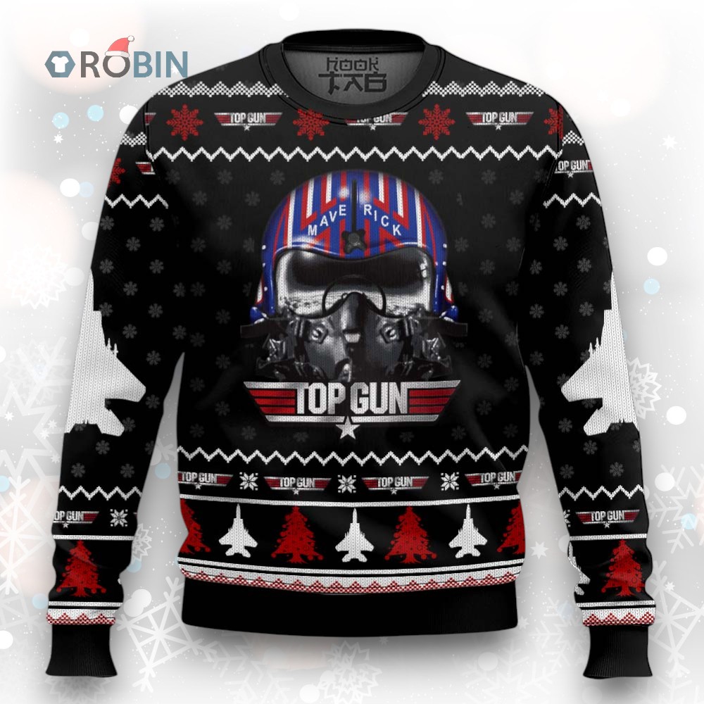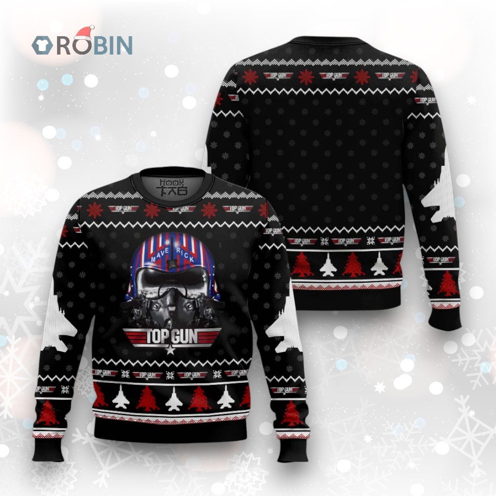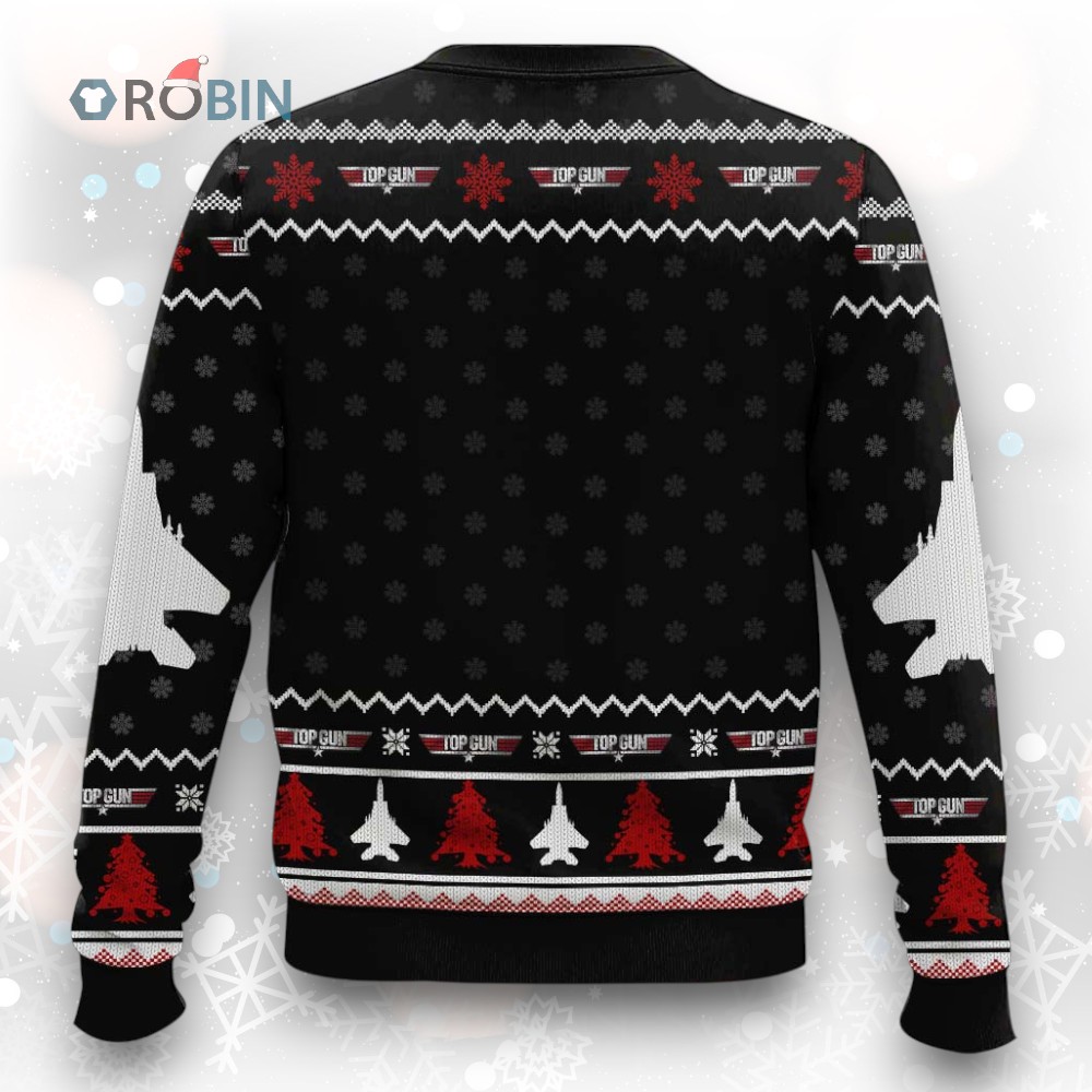 Retro Top Gun Christmas Sweater Fun Ugly Holiday Sweater with Airplane Design