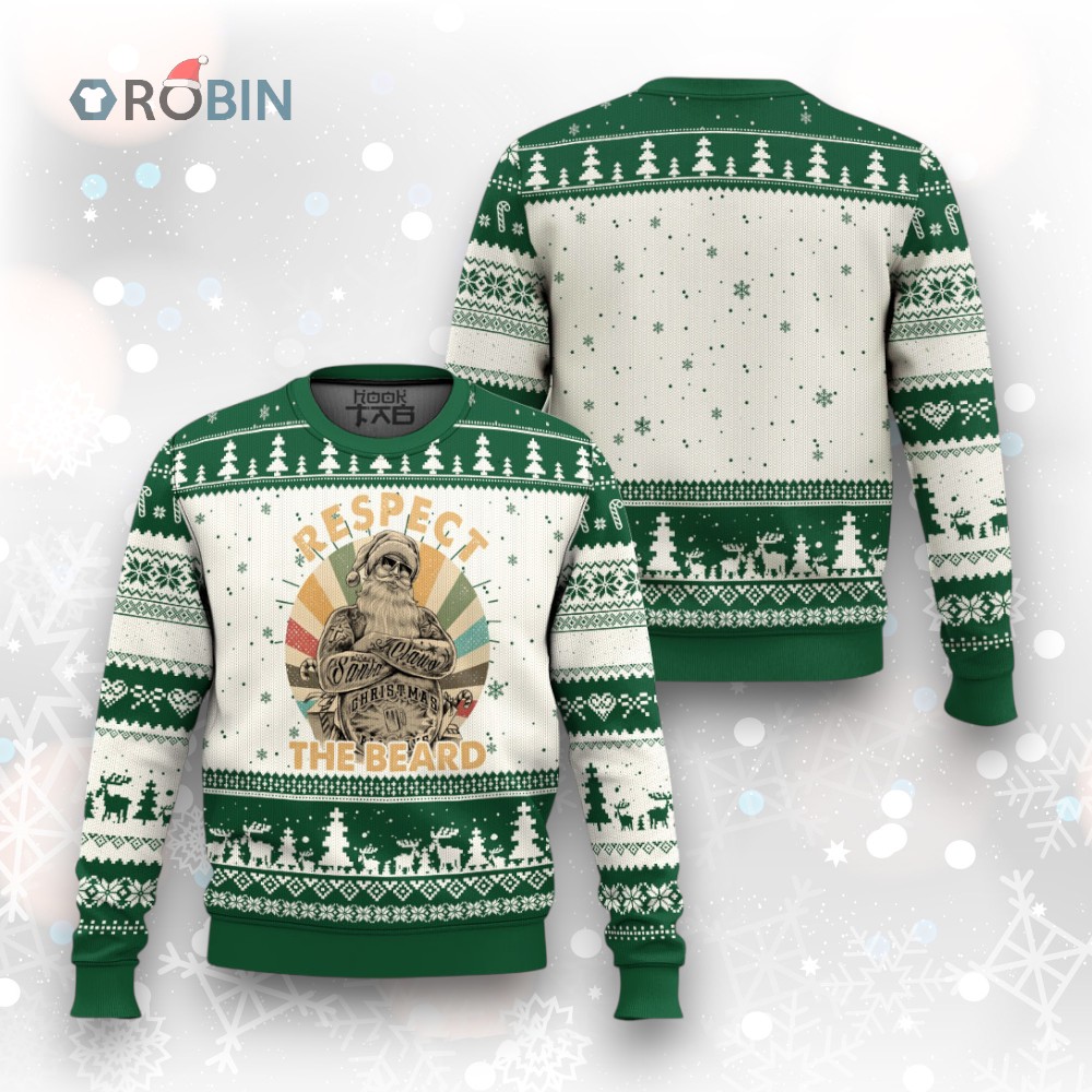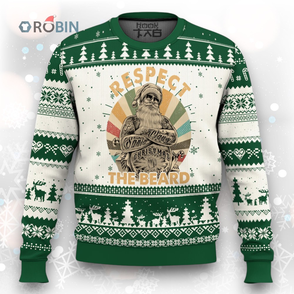 Retro Xmas Ugly Christmas Sweater Respect The Beard Cool Santa Vintage