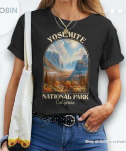 Step back in time with this beautifully designed shirt that captures the essence of Yosemite National Park in the autumn season. Perfect for camping and hiking adventures, this unisex shirt combines style and comfort for all outdoor enthusiasts. Show off your love for nature and nostalgia with this unique and versatile piece that will surely stand out in your wardrobe. Experience the beauty of Yosemite wherever you go with this must-have shirt!