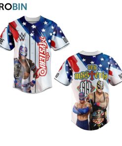 Rey Mysterio, also known as Oscar Gutierrez, is a legendary professional wrestler known for his high-flying acrobatic moves inside the wrestling ring. His iconic 619 finisher, a move involving a springboard splash to the opponent’s face, has become synonymous with his name. The custom baseball jersey shirt style inspired by Rey Mysterio captures the essence of his unique wrestling persona, showcasing his bold and dynamic presence in the sport. With intricate details and vibrant colors, this jersey embodies the spirit of Rey Mysterio’s electrifying performances and undeniable charisma.