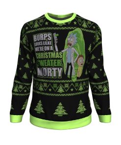 This Rick And Morty Were In A Xmas Sweater Premium Ugly Christmas Sweater available in adult and youth size.