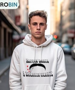 The Rippin Darts Breakin Hearts T-Shirt is a visually striking and edgy piece of apparel that is perfect for those who want to make a statement. The design features a bold, graphic print of a hand holding a dart, with the words Rippin Darts Breakin Hearts written above it. The combination of the striking imagery and the clever wordplay creates a unique and eye-catching design that is sure to turn heads. Made from high-quality materials, this t-shirt is not only stylish but also comfortable to wear. It is an ideal choice for those who want to add a touch of attitude to their everyday look.