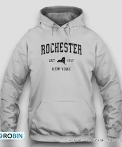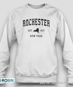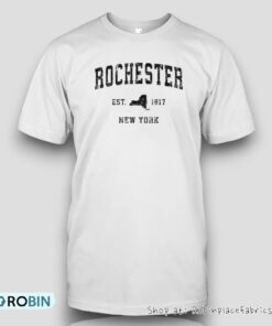 Step back in time with our vintage athletic sports design that pays homage to the rich history of Rochester, NY. Established in 1817, this shirt embodies the spirit of the city and celebrates its enduring legacy in sports. Whether you're a native Rochesterian or a fan of vintage style, this shirt is a must-have addition to your wardrobe. Show off your pride for this historic city with our exclusive design that captures the essence of Rochester's athletic heritage.