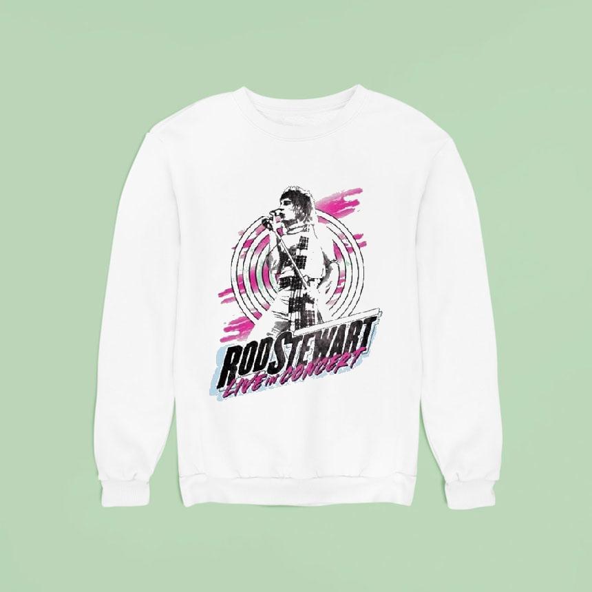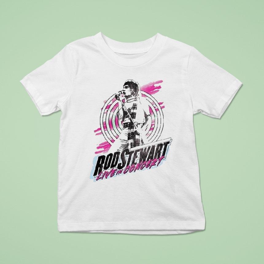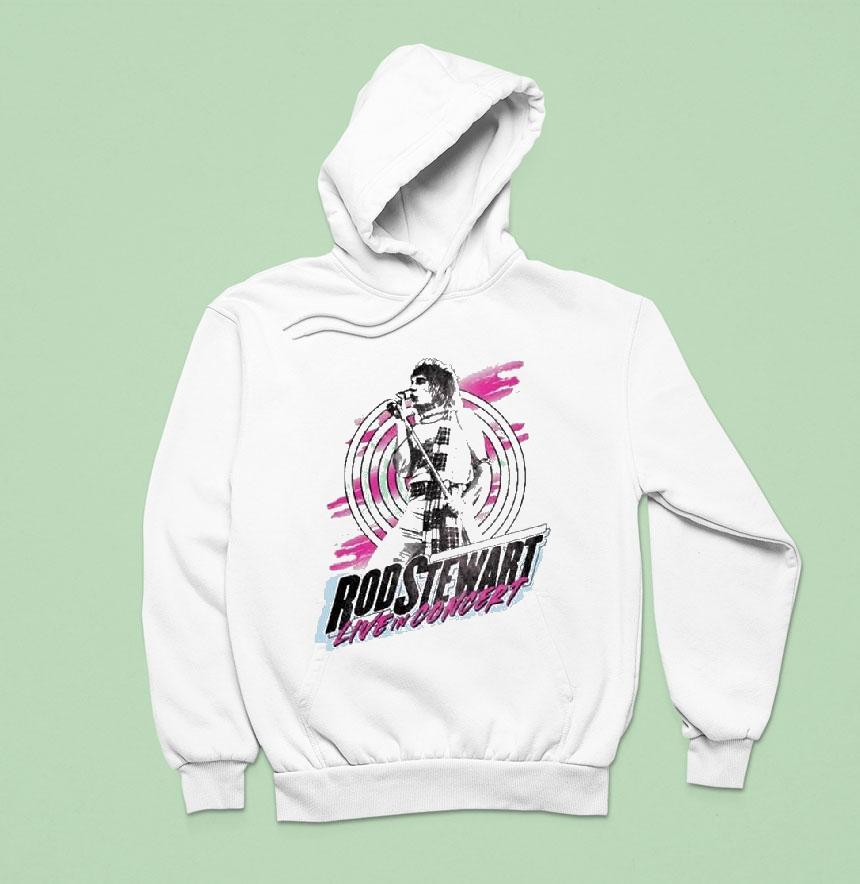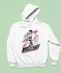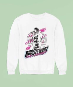 Eyes drawn immediately to the vibrant pink splash behind the illustrated Rod Stewart, the shirt captures the electric pulse of a live performance. The sketch of the singer, microphone in hand, feels dynamic—almost as if you can hear the rasp of his voice cutting through the crowd. Circular concentric rings radiate outward, echoing the amplifying energy of a concert venue, reinforcing that sense of being front row at a legendary moment. Bold, italicized typography arcs above and below with a retro edge, each letter casting a subtle shadow that adds depth and movement without overwhelming the design. This isn’t just a graphic tee; it’s an homage to the raw charisma Rod Stewart brings to his stage presence, a nod to those who can recognize the timelessness of his music and style. Wearers of this shirt share more than fandom—they project a connection to an era when rock and roll was larger than life and every lyric told a story. You don’t need to be at a concert to feel the rush this design evokes, but it certainly fits those who revel in the nostalgia of vintage concert memorabilia or who embrace the bold flair of retro fashion. Whether worn out on the town or layered under a jacket to a fan gathering, this Rod Stewart live concert shirt offers an authentic way to carry a piece of musical history close. It’s a choice for anyone who values craftsmanship in design and the unspoken memories woven into the backdrop of a legend’s sound.