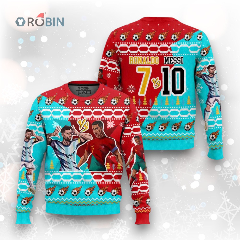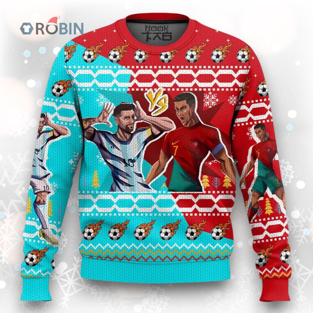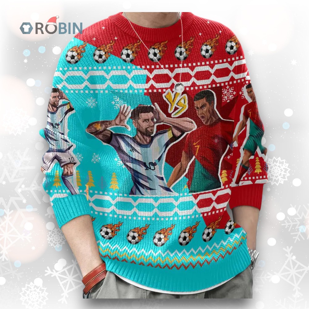 Score some holiday cheer! This sweater features the iconic duo in a festive, albeit slightly chaotic, Christmas design. Perfect for football fans who want to spread some laughs (and maybe spark a friendly debate) this holiday season. Get yours before they're gone! ⚽️🎄😂