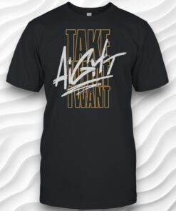 Confidence takes shape in bold strokes across a dark gray canvas. The design features an assertive phrase—layered blocky sans-serif letters spelling out “TAKE I WANT” in gold and white—that seem to challenge the status quo through their distressed brush stroke overlay. This visual tension between rough texture and sharp typography captures the restless energy of urban youth who embrace individuality without apologies. The interplay of text and texture is more than a graphic choice; it speaks to a mindset that values self-expression and agency. It’s a look that resonates deeply with streetwear enthusiasts who see clothing as a form of nonverbal communication, making a statement as much about attitude as style. The layered text suggests movement and intention, as if the wearer is continually asserting their place, unapologetically owning what they desire. For those who move through city streets with a quiet but unmistakable edge—a mix of confidence and deliberate cool—this shirt becomes a subtle emblem of personal power. It aligns with a lifestyle that prizes authenticity and rejects the cookie-cutter in favor of something raw and real. Whether worn casually among friends or layered under a jacket with other urban staples, it feels like an extension of the wearer’s voice. There’s also a thoughtful angle for gift-givers who appreciate this kind of self-assured style. Choosing a piece that speaks to inner boldness instead of generic trends signals understanding and respect for individual spirit. It’s not just about the look; it’s about what it says without saying it loudly. When the goal is to express a sharp sense of self and a refusal to settle quietly, this Take What I Want shirt fits naturally into the wardrobe, bridging personal meaning with modern streetwear aesthetics.