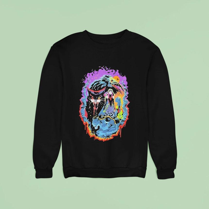 The kind of t-shirt that feels like it’s borrowed from a retro comic book, vibrant with neon flashes and electric energy. Across the chest, a riot of color bursts from a detailed collage—a mix of fierce characters caught mid-motion and a dragon-like creature weaving through flames and splashes that seem to pulse with motion. The absence of typography lets the artwork own the space, inviting the eye to roam through the chaos of action and fantasy. It’s a piece that’s as bold as the stories it nods to—epic battles and wild adventures scribbled in the margins of pop culture. This shirt speaks directly to anyone who's spent hours diving into graphic novels or debating favorite fantasy sagas. It signals a pride in the fantastical and the dramatic, an outsider’s badge worn with enthusiasm rather than apology. The striking neon against darker backgrounds plays with that feeling of being part of a secret world, a tribe bonded through shared obsessions. More than just convention wear, this kind of shirt slips easily into everyday scenes—coffee runs, meetups, lazy weekends—where a bit of visual chaos can spark conversation and connection. For those who treasure fantasy comics or graphic art, it’s a wearable shout-out to that beloved blend of imagination and action. The Sahara Traders scare zone shirt fits in those moments when you want your style to tell a story without needing to say a word.