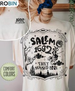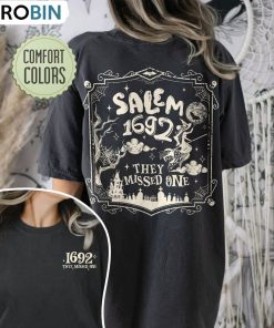 The Salem 1692 They Missed One Comfort Shirt 1692 Salem Massachusetts Short Sleeve Sweatshirt is a stylish and comfortable piece of clothing that pays homage to the historic events that took place in Salem, Massachusetts in 1692. This short sleeve sweatshirt features a unique design that commemorates the famous witch trials that occurred during that time period. It is made from high-quality materials that provide a cozy and comfortable fit, making it an ideal choice for casual wear. With its eye-catching design and comfortable fit, this sweatshirt is a must-have for those interested in history and fashion.