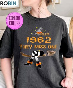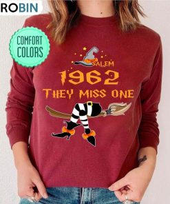 The Salem 1692 They Missed One Shirt Spooky Season Halloween Tee Tops Sweatshirt is the perfect attire for the Halloween season. Inspired by the spooky events of the Salem witch trials in 1692, this shirt features a haunting design that showcases the eerie atmosphere of the time period. With its comfortable sweatshirt material and stylish tee top, this garment is both cozy and fashionable. Whether you're attending a costume party or simply embracing the Halloween spirit, this shirt is a must-have for any spooky season celebration.