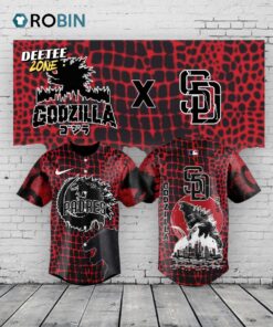 Unleash the monster in you with this epic collaboration! Rock the ultimate fan gear that combines the best of San Diego Padres baseball and the King of the Monsters. This baseball jersey shirt is a guaranteed home run for any true fan. Get yours now and show your Padres pride!