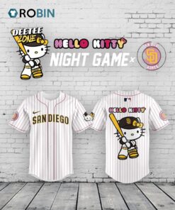 Step up to the plate in style! This Hello Kitty collab with the Padres is a grand slam. Rock this adorable baseball jersey shirt at the game or anywhere you want to show off your love for America's pastime and everyone's favorite kitty. A must-have for any fan! ⚾💖
