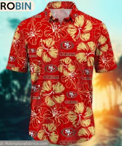 San Francisco 49ers Hibiscus Tropical Pattern NFL Hawaiian Shirt details