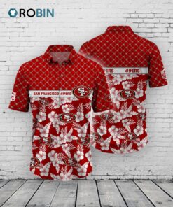 Rep the Niners in style! This Hawaiian shirt is perfect for showing your team spirit with a tropical twist. Rock the San Francisco 49ers colors and palm leaf design all summer long. Get yours today!