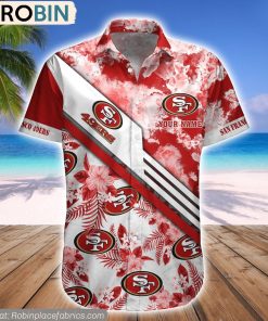The San Francisco 49ers Watercolor Pattern Hibiscus Hawaiian Shirt showcases a vibrant and tropical design. With its beautiful hibiscus flower pattern and watercolor effect, this shirt is sure to stand out. Its bright colors and soft fabric make it perfect for wearing at the beach or for a casual day out. The shirt features the iconic logo of the San Francisco 49ers, adding a touch of sportiness to the overall look. It’s the perfect garment for any fan of the 49ers who wants to show their team spirit in a fun and stylish way.